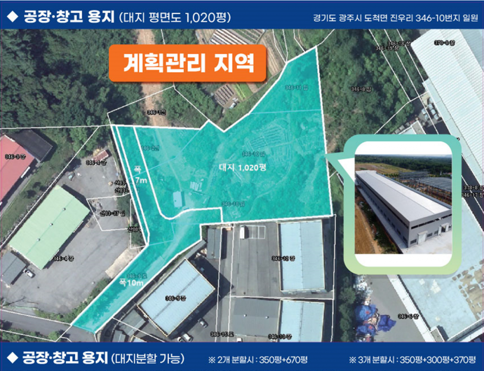 [매매] 경기도 광주시 도척면 진우리 1020평 공장 창고 용지 매매